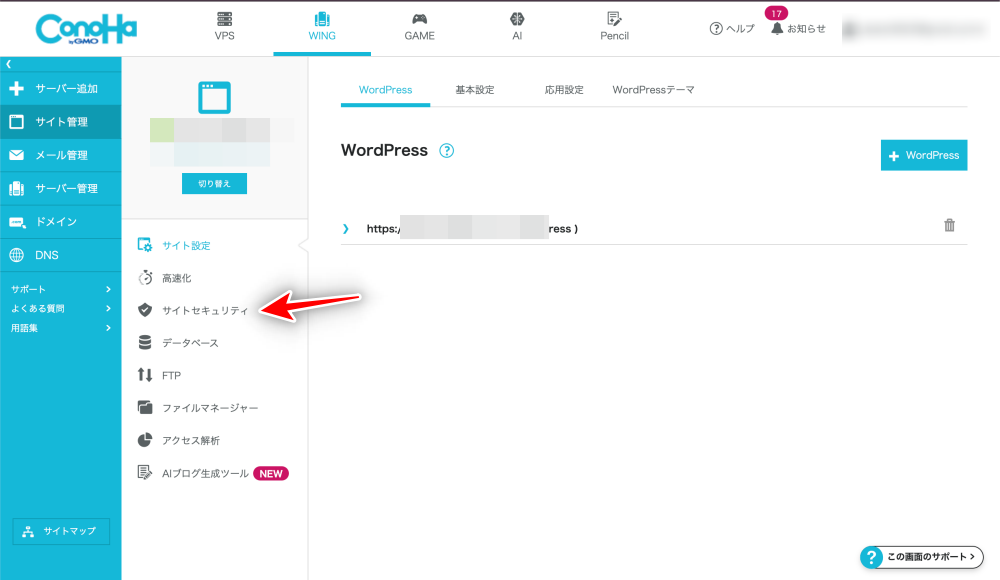 - 「サイトセキュリティ」を選択